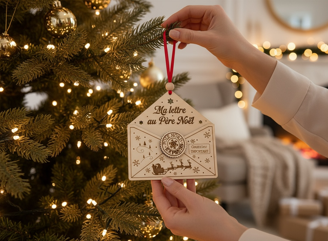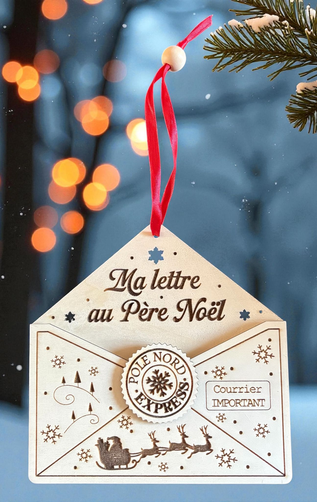 Offrez-vous ou à vos enfants une expérience de Noël inoubliable avec notre enveloppe en bois pour lettre du Père Noël. C'est le détail qui fera toute la différence sur votre sapin !