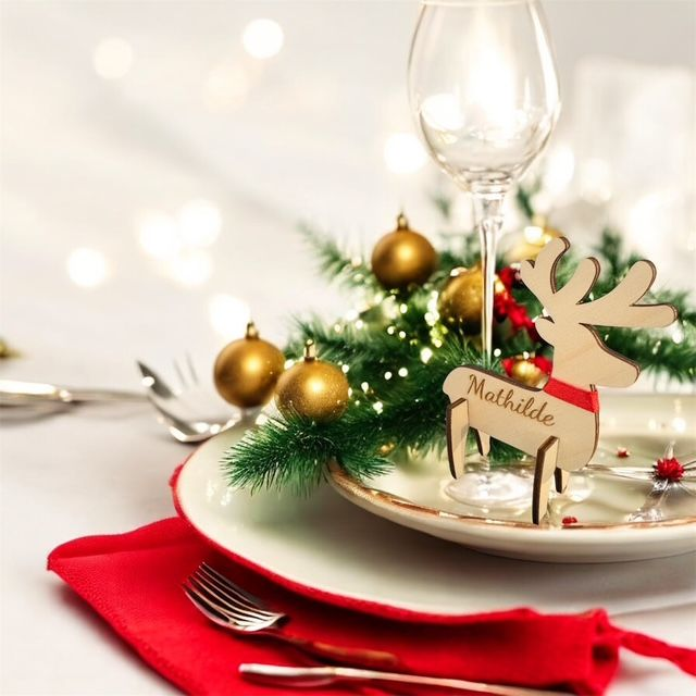 Marques Places en Bois « Rêne de Noël » Personnalisé