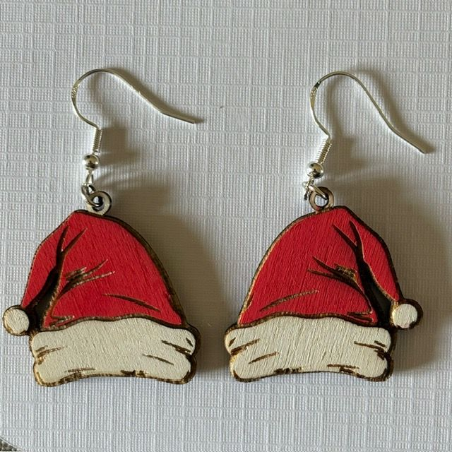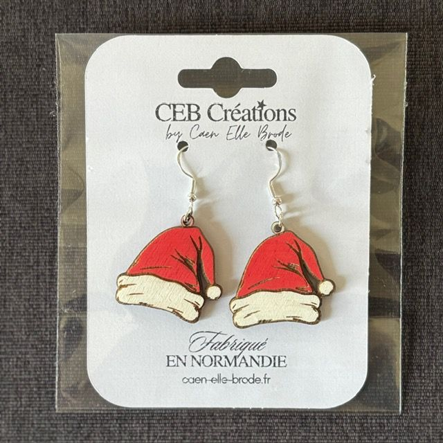 Apporte une touche de magie festive à votre look avec nos boucles d'oreilles en bois en forme de bonnet de Noël.
