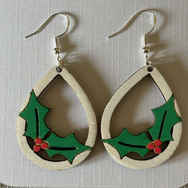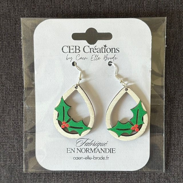 Apporte une touche de magie festive à votre look avec nos boucles d'oreilles en bois en forme de gouttes avec Houx de Noël.