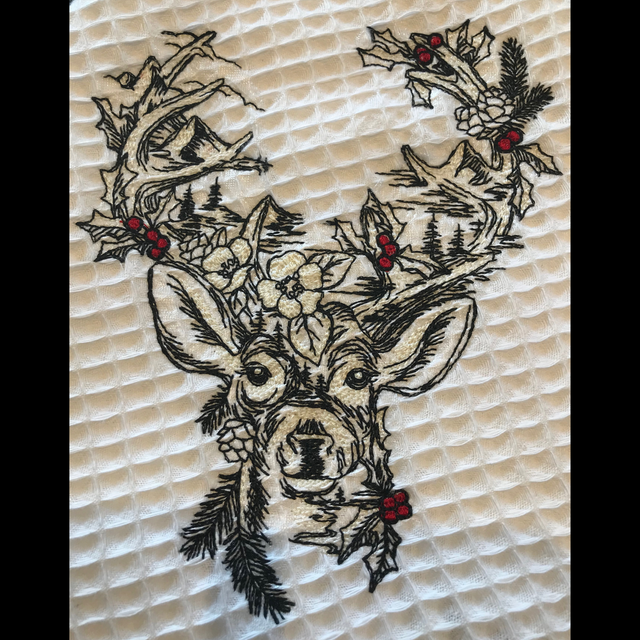 Broderie avec un Cerf de Noël, ajoutant une note festive et originale à votre intérieur en période de fête.