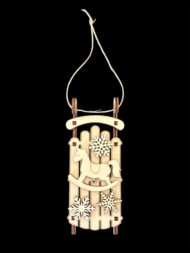 Apportez une touche ludique et nostalgique à votre décoration de Noël avec notre petite luge en bois à suspendre, ornée d'un charmant cheval à bascule. Cette décoration unique incarne à la fois l'esprit de l'enfance et la magie des fêtes, se fondant parfaitement dans votre sapin ou votre intérieur festif.