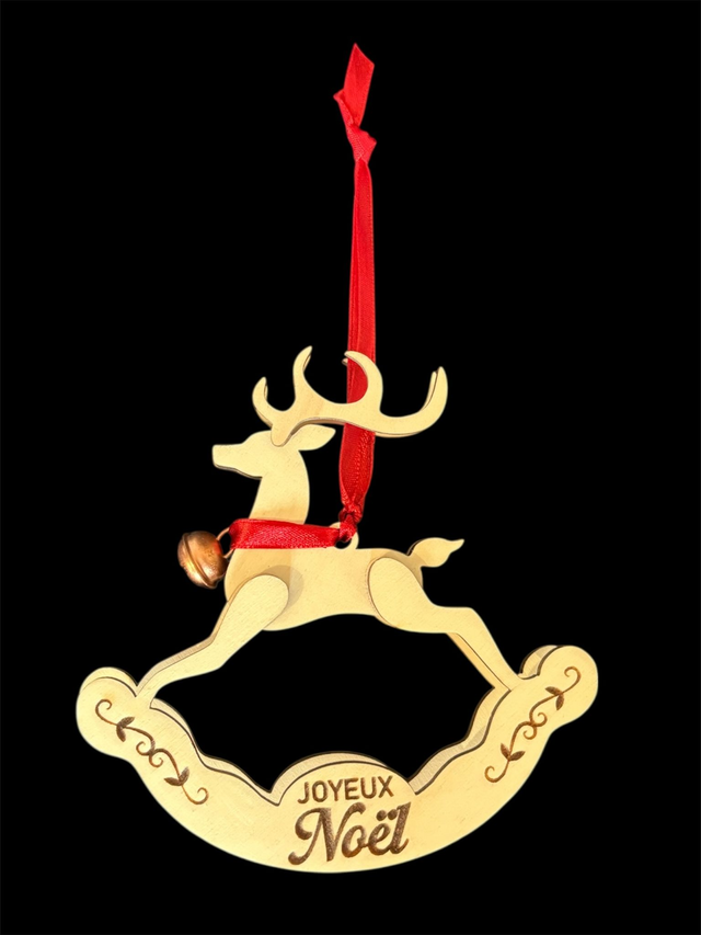 Apportez une note de magie et de tradition à votre intérieur avec notre rêne de Noël à bascule en bois, orné de l’inscription « Joyeux Noël » et d’une petite clochette autour du cou.