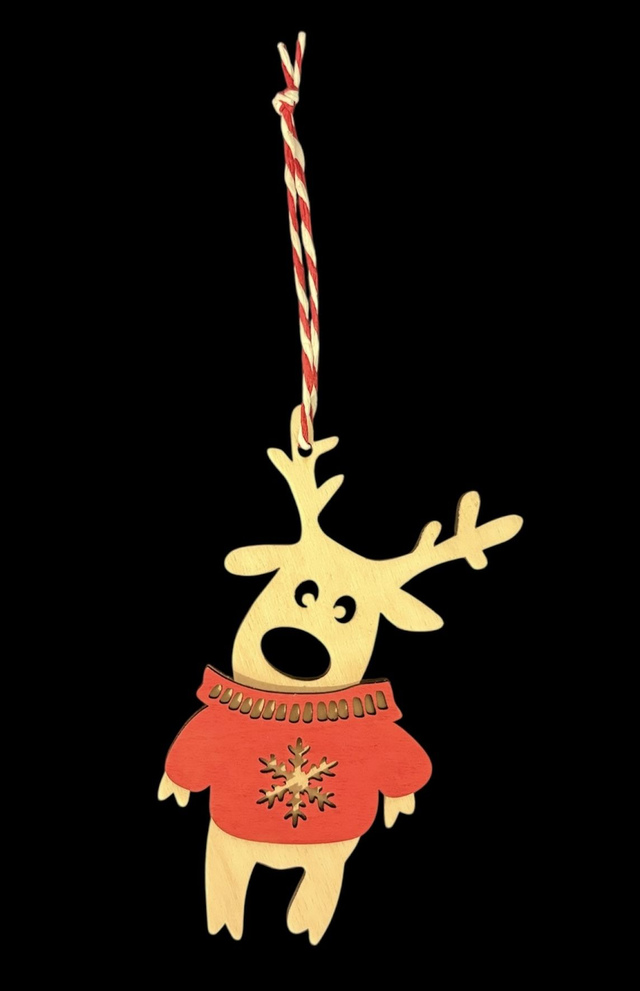 Ajoutez une touche d'originalité et de charme à votre sapin de Noël avec notre suspension en bois représentant un rêne vêtu d'un adorable pull-over. Cette décoration unique est parfaite pour ceux qui souhaitent combiner tradition et modernité dans leur décoration de fêtes.